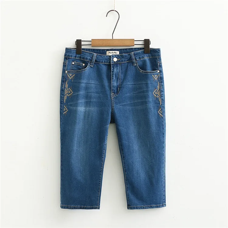 Plus Size Skinny Capri Jeans Women's stretch calf Length Denim shorts Jeans For Women's Pants With Tall Tails Summer