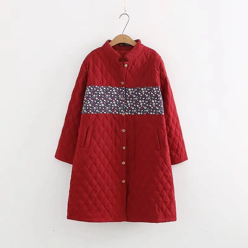 Plus Size Herfst Women Long Light Jackets Chic Long Mouwen Single Breasted Flowers Folk Women Coated Jas Parka