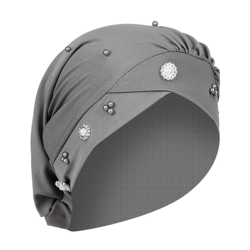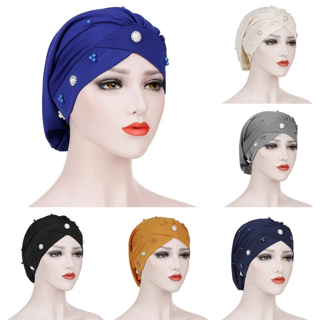 Для женщин однотонные Бисер Индия шляпа мусульманских рюшами Рак шапка Хемо-тюрбаны для Обёрточная бумага Кепки