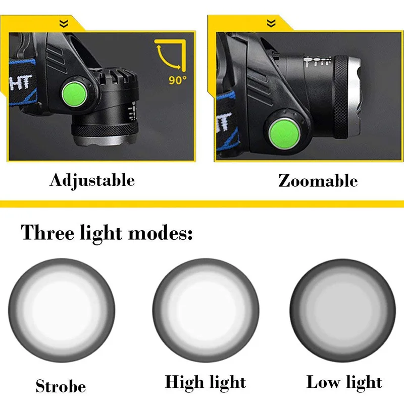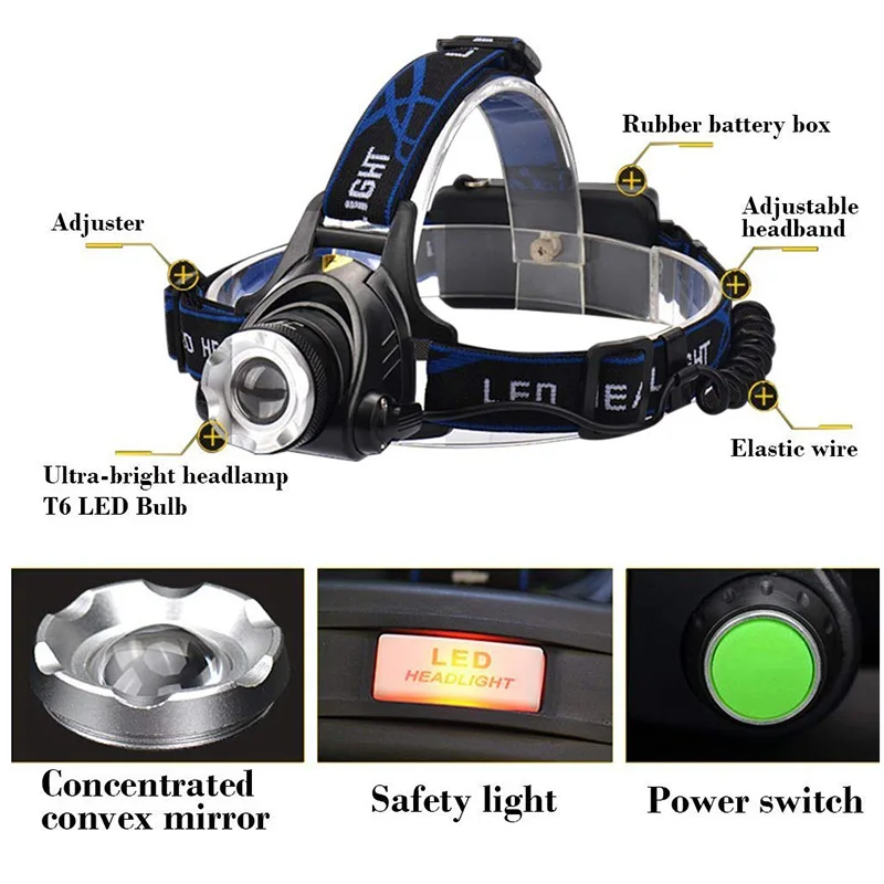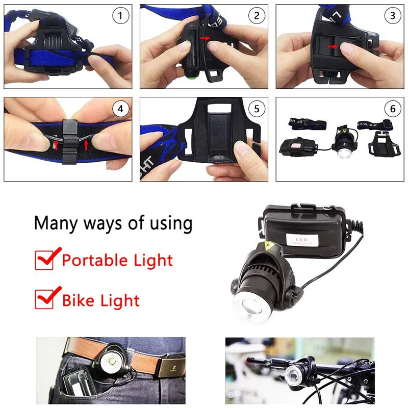 * Используйте светодиодный чип XM-L T6, он ярче, чем основной светодиодный налобный фонарь.