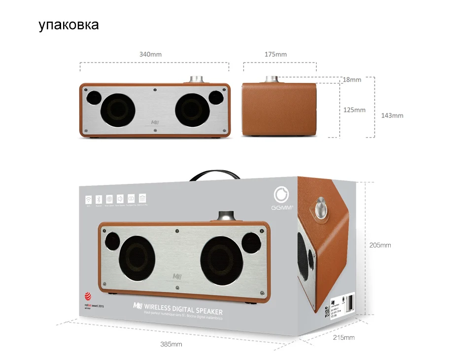 GGMM M3 WiFi/Bluetooth 4,0 беспроводной динамик Цифровой 3D HiFi Звук Объемный Lound Динамик портативный 40 Вт Саундбар для компьютера телефона Заказы стран ЕС: будет отправлен со склада Gernamy Прожектора: -Лауреат премии RedDot в Германии -Ретро-дизайн с кожей ручной работы и матовой алюминиевой панелью -4 динамика, два купольных твитера и два кевларовых динамика средней частоты 3,5" -Обеспечивает богатый и чистый звук от 50 до 100 м -Воспроизведение музыки, хранящейся на вашем устройстве или потоковой передачи из онлайн-источников -Поддержка многокомнатной игры и отдельных каналов L/R, если купить 2 или более устройств -Совместимость с iOS/Android/Windows/Mac OS -Эксклюзивное приложение GGMM дает вам полный контроль над вашей музыкой Технические характеристики: -Потребляемая мощность: 40 Вт -Режим подключения: вход Aux/Wi-Fi/Bluetooth -Совместимость приложения: IOS 7,0 или более поздней версии/IOS 10,1 или более поздней версии/Android 4,0 или более поздней версии/Windows XP/Vista/7/8 -Потоковая передача: Airplay для iOS/DLNA для Android -Максимальное количество устройств: до 16 шт, подключаемых для многокомнатной функции Детали упаковки: -Размер изделия: 340x170x140 мм -Вес нетто динамика/шт: 3,28 кг -Размер посылка: 390*215*210 мм -Вес брутто, посылка/шт: 3,92 кг