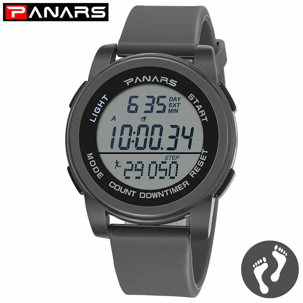 На открытом воздухе Многофункциональные спортивные часы, 50 м водонепроницаемые цифровые часыВыбор материала: пластиковый ремешок, высококачественное пластиковое зеркало, нижняя крышка из нержавеющей стали, Пряжка из нержавеющей стали