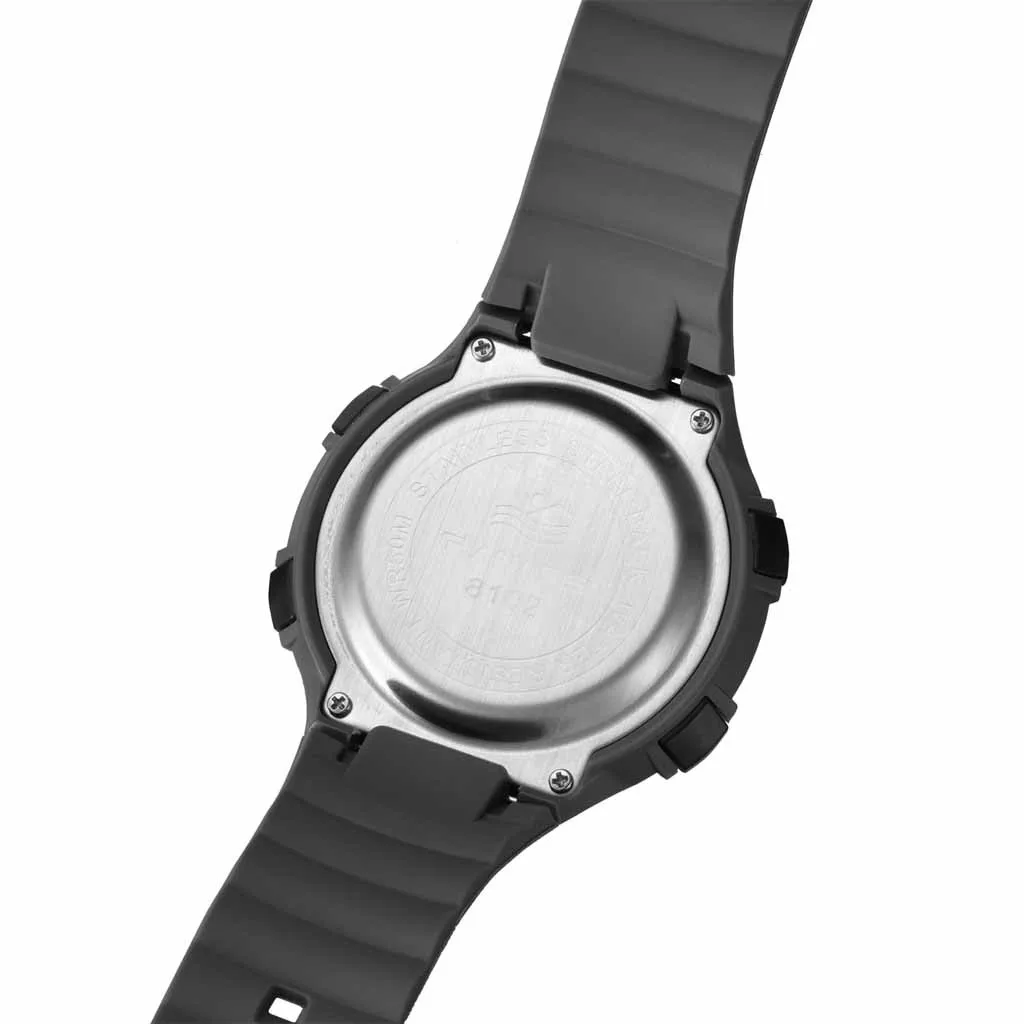 На открытом воздухе Многофункциональные спортивные часы, 50 м глубокие водонепроницаемые цифровые часы Выбор материала: пластиковый ремешок, высококачественное пластиковое зеркало, нижняя крышка из нержавеющей стали, Пряжка из нержавеющей стали