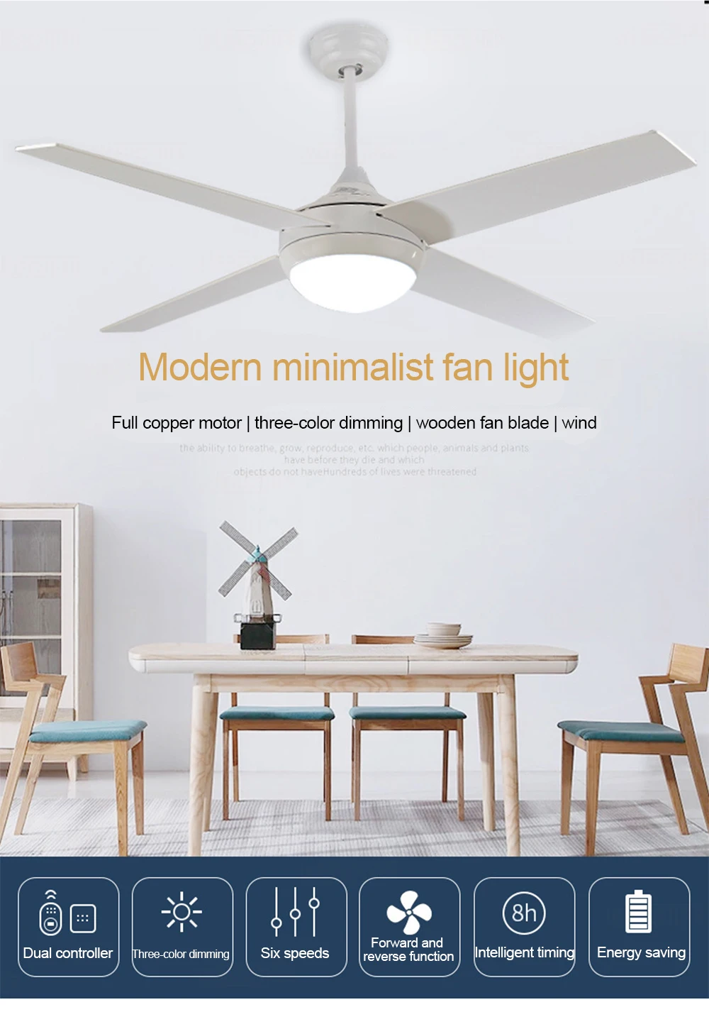 Ceiling Fan Remote Control Light Nordic Modern Dinning Room Bedroom Living Room Restaurant Solid Wood LED Fan Lamp 110V 220V