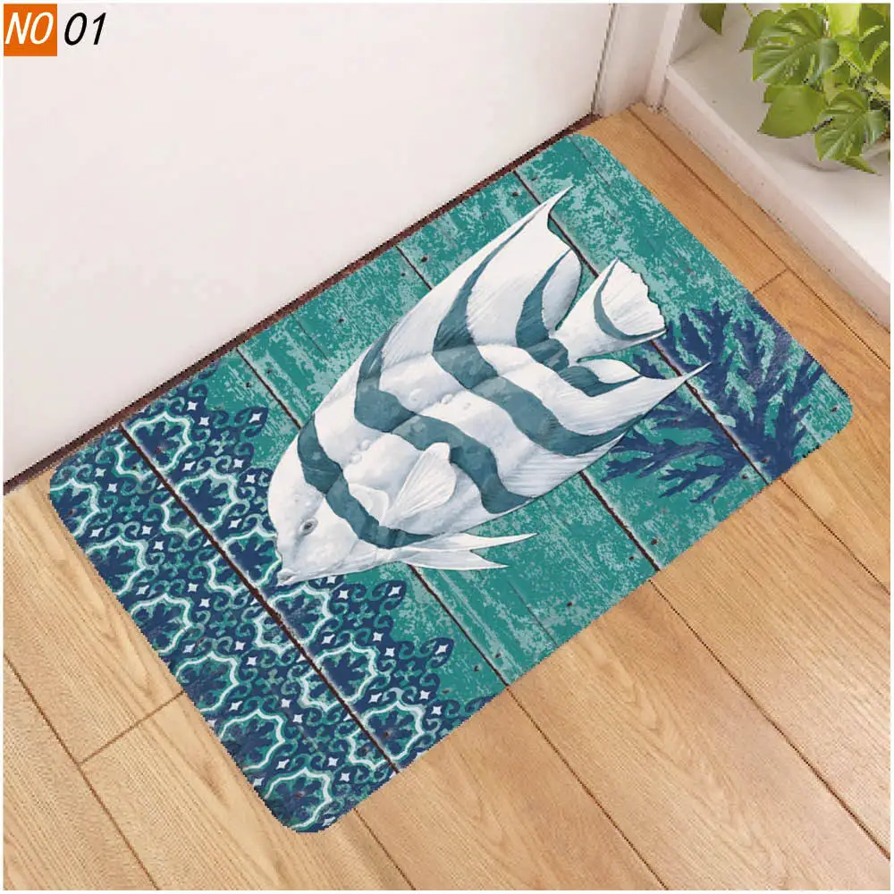 OIMG Противоскользящий напольный коврик для ванной с 3D принтом морской рыбы, краба, водопоглощающий коврик для ванной комнаты, коврик для туалетной двери в гостиную