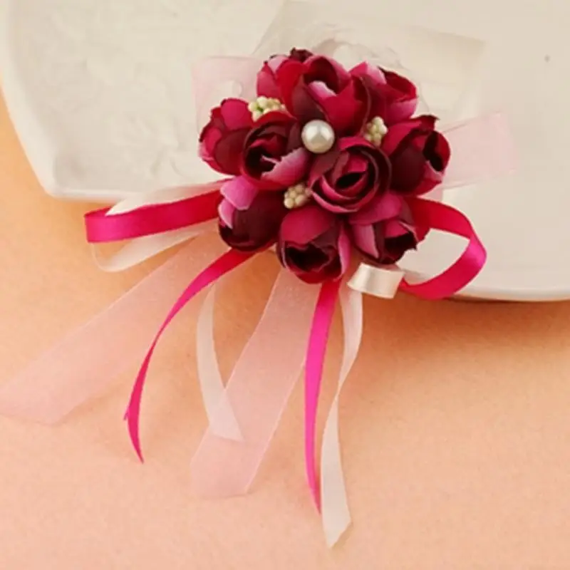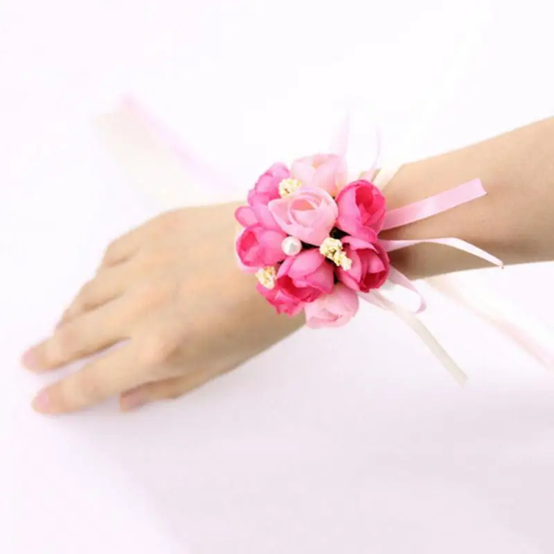 Свадебный букет невесты с цветами на запястье, шелковый браслет с розами, Декор
