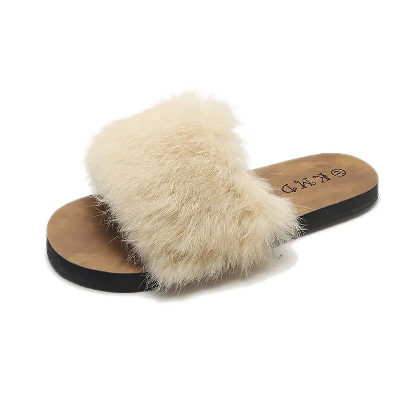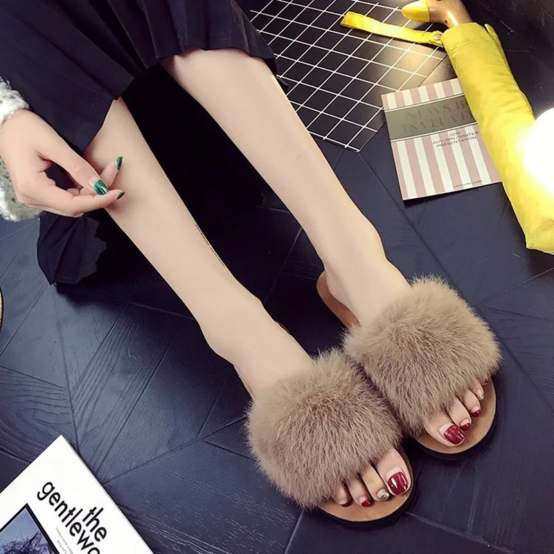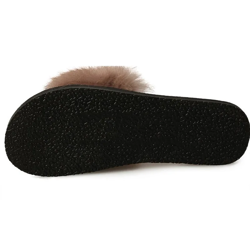 Новинка; сезон осень; женские меховые шлепанцы; Стильные пляжные тапочки на плоской подошве; милые пушистые тапки оптом