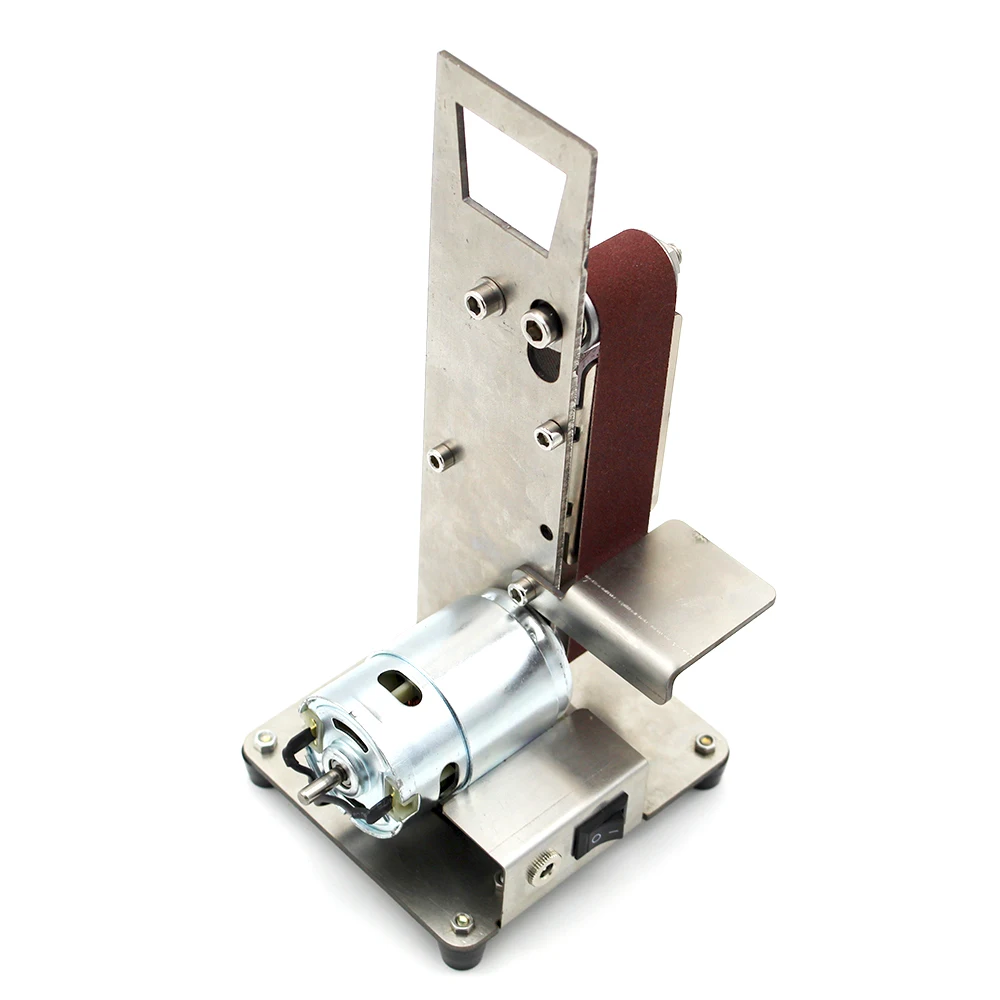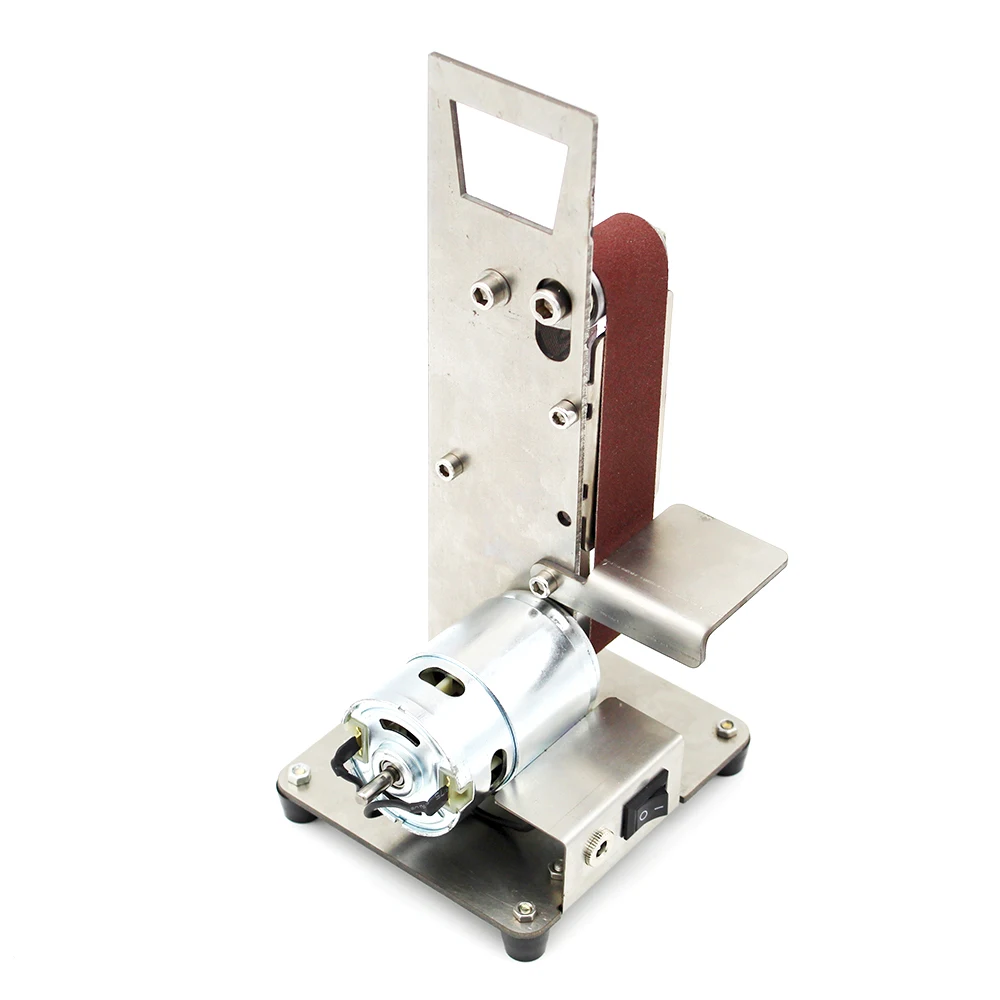 Это многофункциональный ленточный шлифовальный станок, мини портативный, низкий уровень шума, может использоваться для высокоскоростного стального сверла грубого шлифования, кромки лезвия, тонкого шлифования вольфрамовой стали токарного инструмента, полировки корень дерева Бодхи и т. Д., простой в установке и эксплуатации, это домашний инструмент DIY.