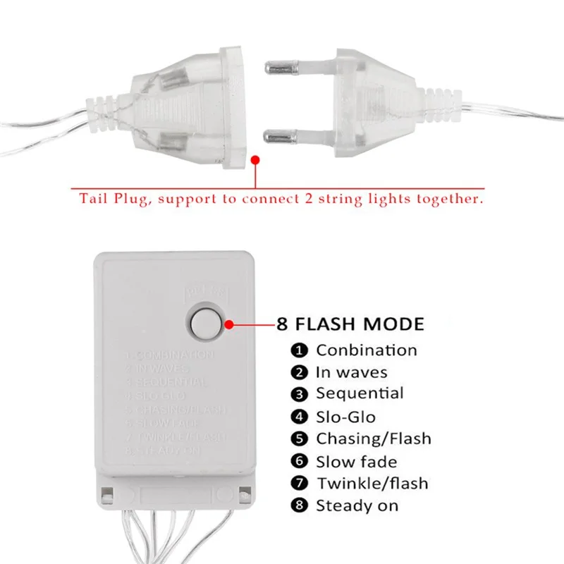 √Очаровательные огни делают Ночь еще красивее и создают идеальную атмосферу для вашего места. Несомненно, вы почувствуете элегантную роскошь и романтичность. √ IP64 водонепроницаемый, прочный для ежедневного использования. √Plug источника питания, адаптированные к 100V-240V, низкое тепловыделение, энергосберегающие и не вредит экологии, безопасен в эксплуатации. √ 8 режимов мигания с блоком управления. (комбинация/в волнах/последовательный/Slo-glo/чеканка/медленное выцветание/мерцание/Постоянное включение) √Идеально подходит для внутреннего и наружного освещения, Рождества, вечерние, Дня Святого Валентина, свадьбы, дома, окна, ванной комнаты, фестиваля, праздника, шоу, ресторана, отеля, коммерческого здания, торговый центр и т. Д. Спасибо, что сделали нас частью вашего украшения! 1. Бренд: Ouktor 2. Цвет: Теплый/цветной 3. Напряжение: 100-240 В 4. Мощность: 8 Вт 5. Вилка: вилка ЕС/США Теплые советы: Благодаря светильник и экрана Цвет Товара может быть s светильник ly отличается из-за характеристик монитора компьютера. Приветствия! Посылка включает в себя: 1 x звезда и лунный занавес