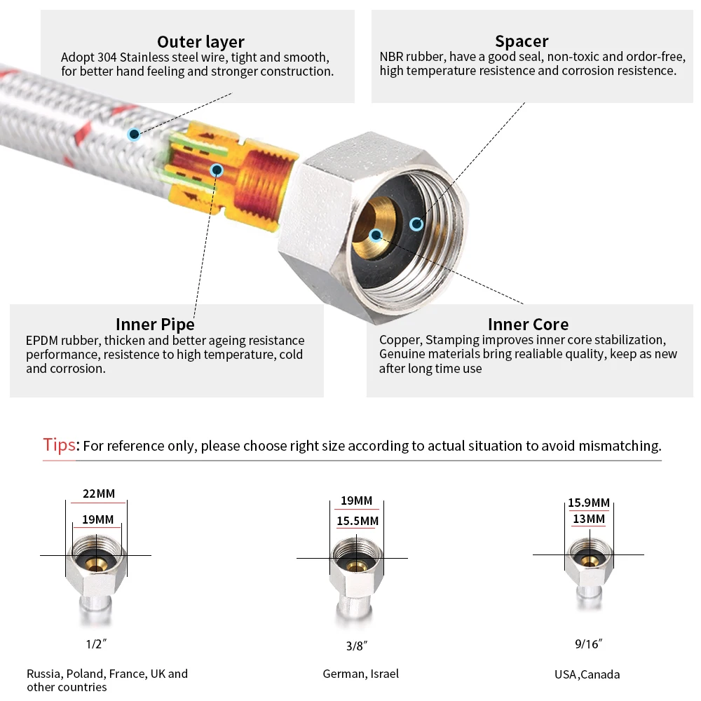 【Высокопрочный Плетеный вход Hose】Прочный и высокопрочный провод из нержавеющей стали плетеный впускной шланг и EPDM Резина, герметичный, взрывозащищенный и длительный срок службы.