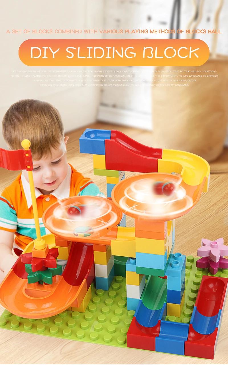 Большие размеры Строительные блокиМрамор забе лабиринт, Шариковая дорожкаДети могут DIY свой собственный трек и скользить по мячуБлоки также могут создавать все виды формы, такие как животныеБлоки небольшого размера совместимы с большинством ведущих брендов100% абсолютно новый, высокое качествоИзготовлен из АБС-пластика, нетоксичный материалРазмер, как показано на картинкеУпакован в милый Подарочный пакет, может быть подарком или перепродажейИнструкции по зданию включены, легко построить Посылка включает в себя:1 комплект строительных блоков