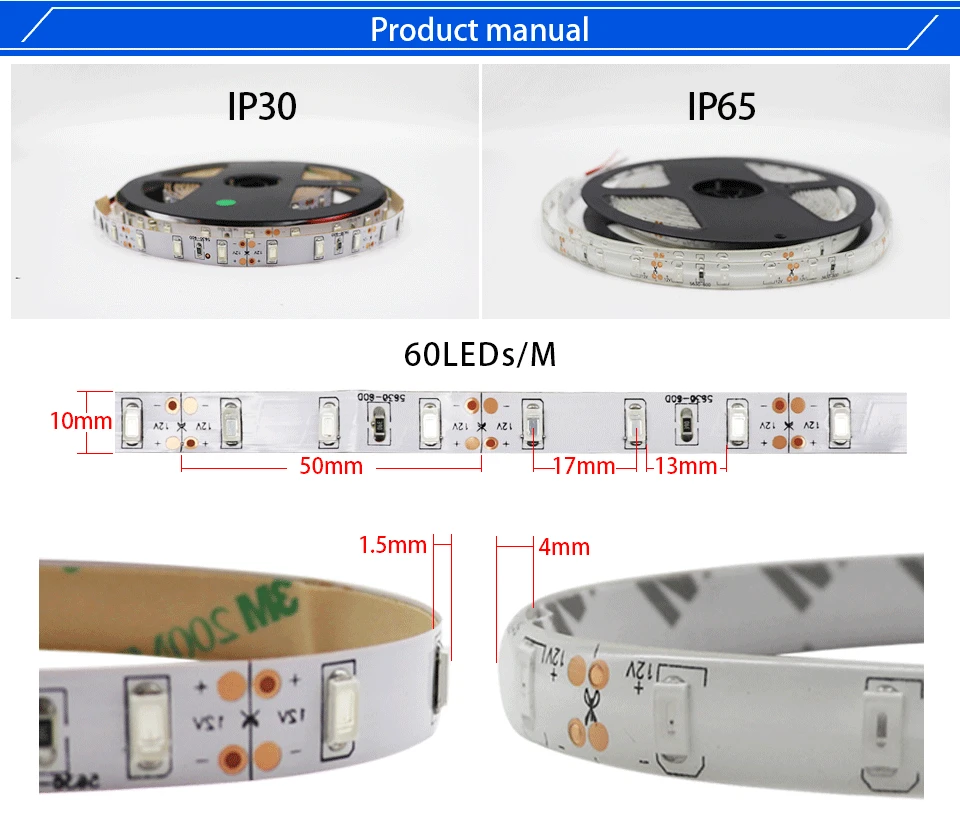 Размер: ш1см x т0.2см Цвет: теплый белый/холодный белый/синий/красный/зеленый Степень защиты: водонепроницаемая согласно стандарту Не Водонепроницаемый (IP30) / Водонепроницаемый (IP65) Рабочее напряжение: 12 В постоянного тока Количество светодиодный: 60 светодиодный s/m Угол обзора: 120 ° ~ 140 ° Рабочая температура: от-20 ° до 50 ° Световой поток: 36-40LMПрименение: