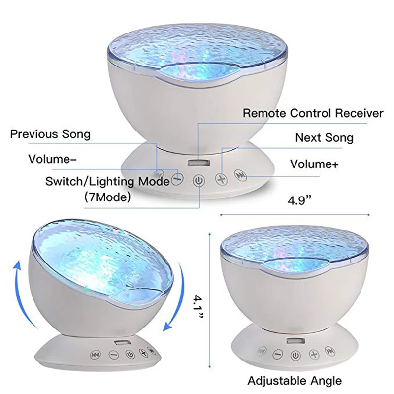 -Регулируемый угол наклона 45 градусов, чтобы ночной Светильник волны океана покрывал потолок или стены в желаемых направлениях.