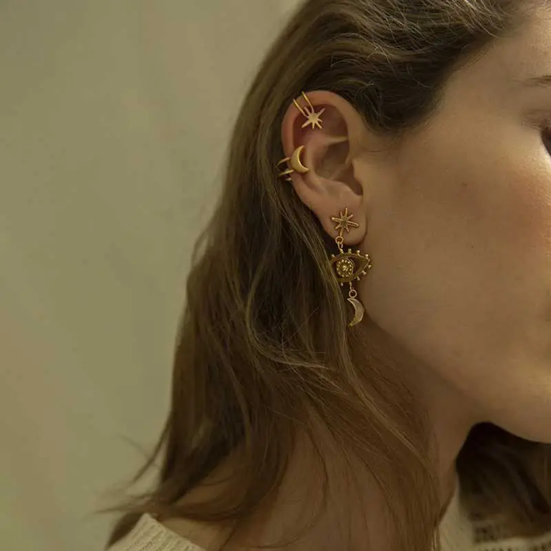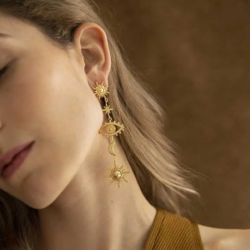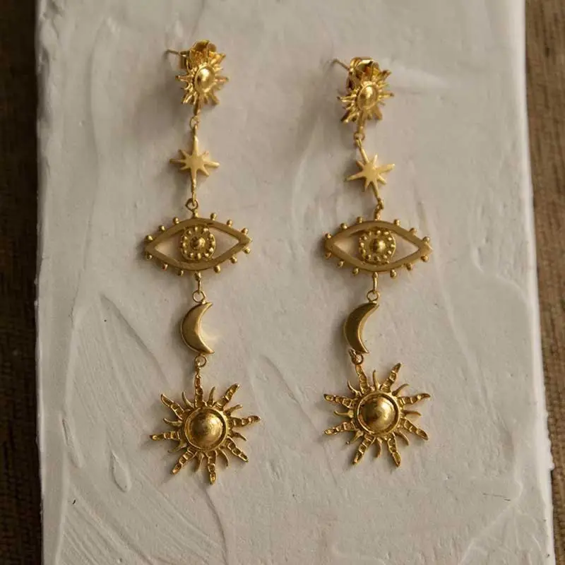 Стильные серьги с подвеской в виде луны и сглаза, длинные висячие серьги-гвоздики