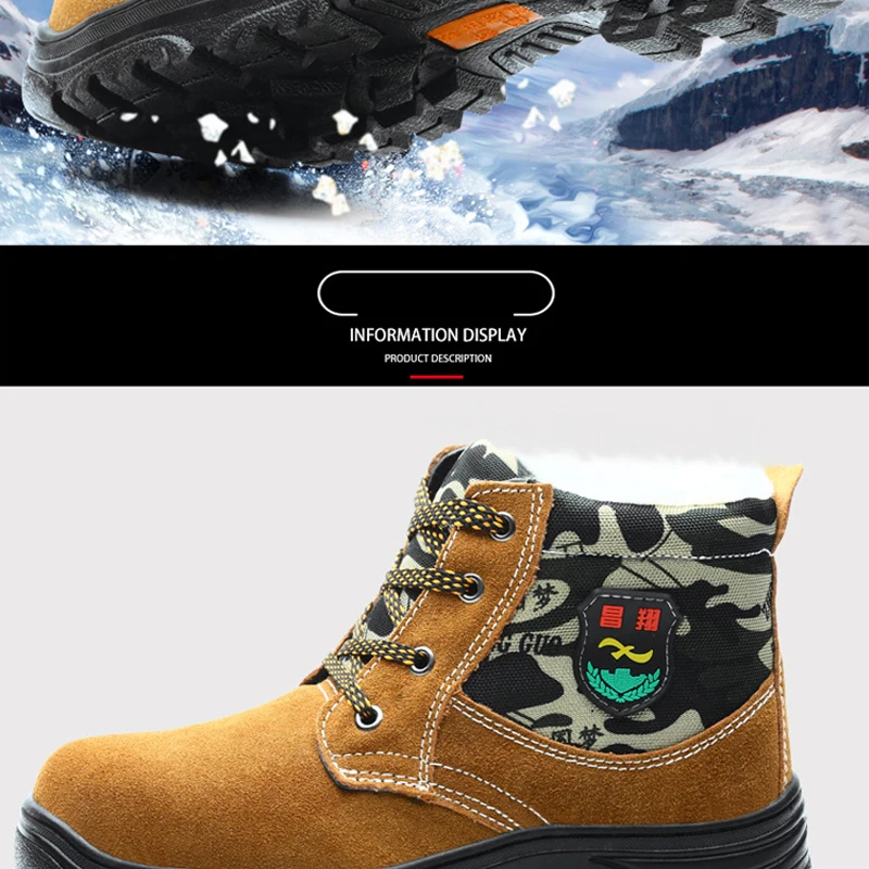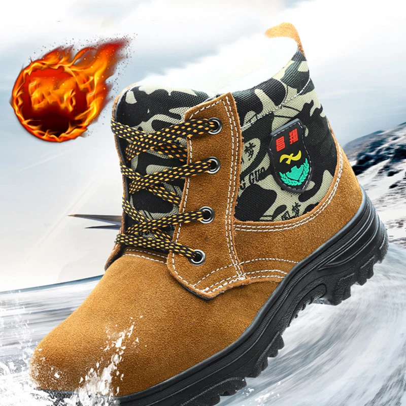 Зимние камуфляжные теплые мужские ботинки со стальным носком; нескользящая защитная обувь для проколов; Высококачественная неубиваемая Рабочая обувь