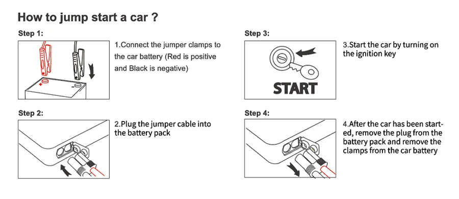 Предназначен для 12В транспортных средств с до 4.0л бензиновым 2.4л дизельным двигателем автомобилей, внедорожников, мотоциклов, грузовиков и многого другого.