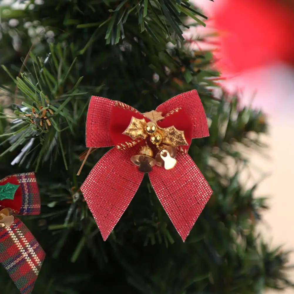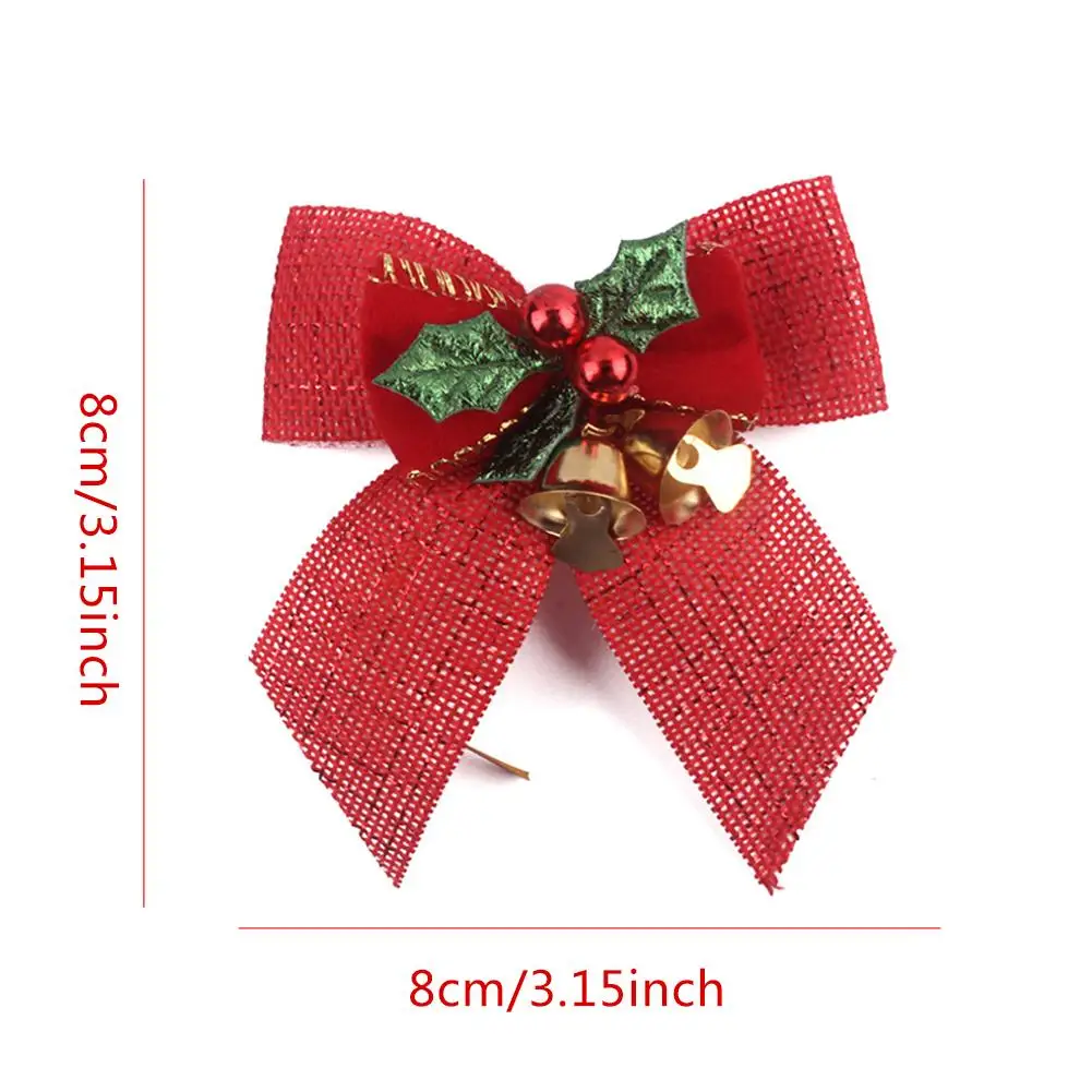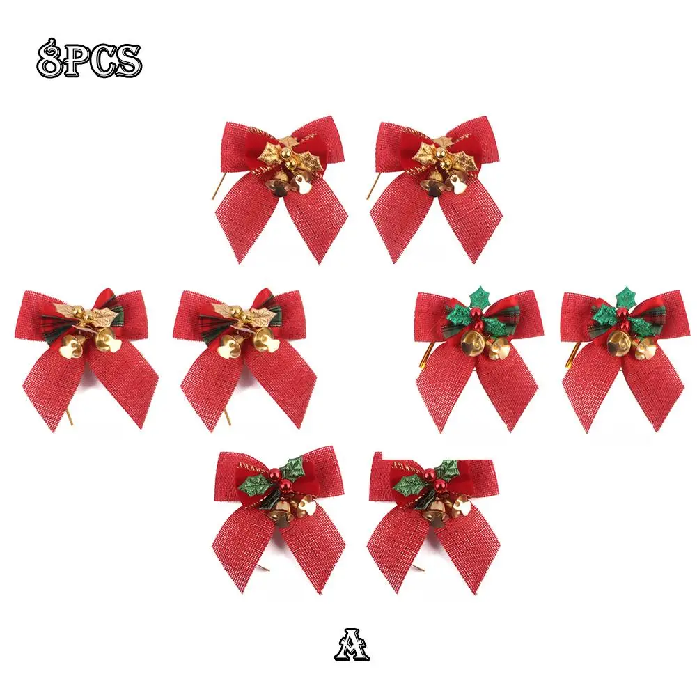 8 шт., Рождественский Декор, праздничный красный праздничный подвесной декор, сетка, бант, льняная Рождественская елка, украшение с бантом, с мини-колокольчиком