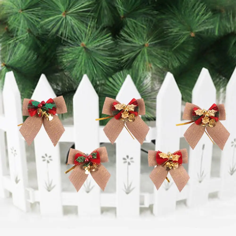 1. Материал Премиум-качества: бант имеет мягкую и прочную льняную ткань, которая также является праздничным бантом с украшением мини-колокольчика, идеально подходит для рождественских или других вечерние украшения.8 * декоративный бант