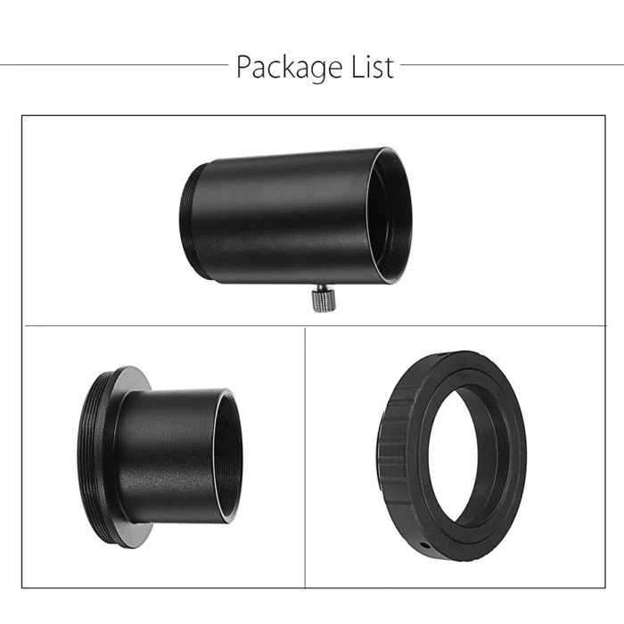 4. Позволяет использовать Т-образное кольцо, оснащенное DSLR или SLR камерой непосредственно в телескоп. Бочка адаптера Резьбовая для 1,25 "фильтров.