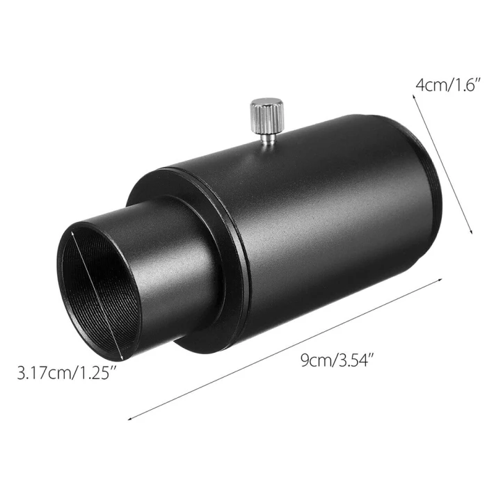 1. Этот универсальный адаптер камеры сделан из черного анодированного алюминия и совместим с 1,25 дюймовыми фокусировщиками телескопа.
