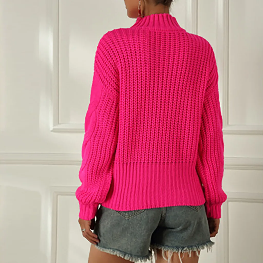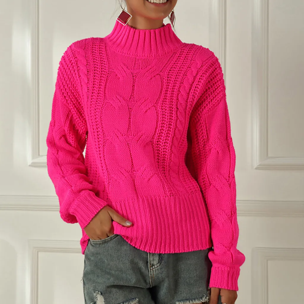 Толстый зимний женский свитер, вязаные Джемперы для женщин, Розовый пуловер, свободный зимний свитер с длинным рукавом, Женский пуловер