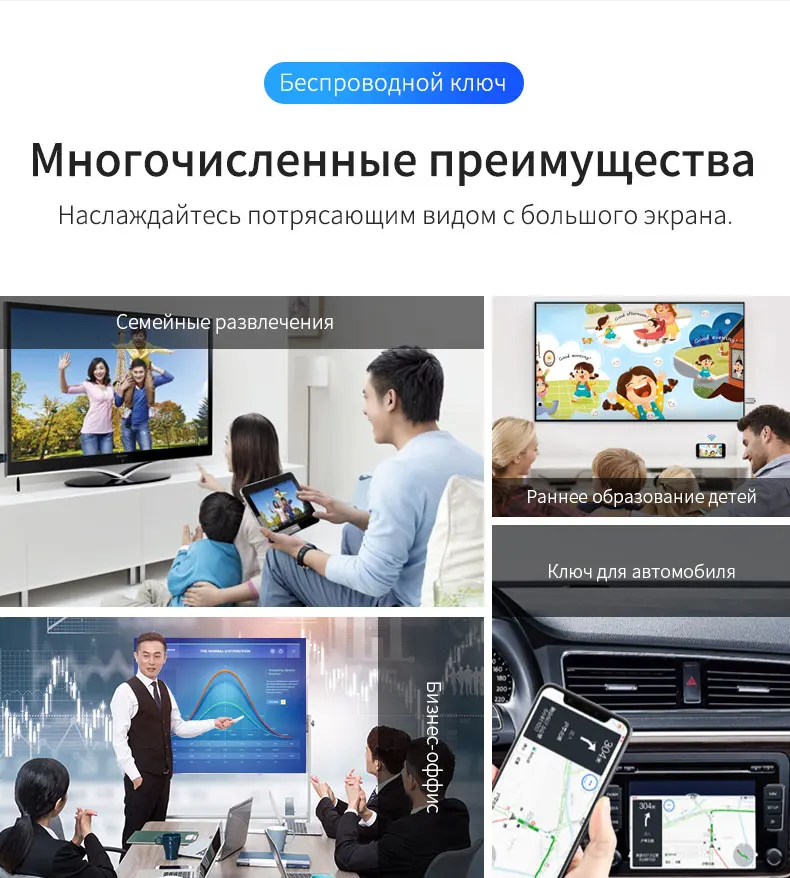 Прожектора: 1.GGMM модернизированная модель (HM-500): беспроволочный дисплей донгл изготовлен в пластиковом материале, серебряный цвет, похожий на ваше устройство, как телевизор/проектор и т. д., без внешнего WiFi siginal, простой, но сделать работает идеально 2. Двухдиапазонный WiFi: 2,4G/5G Wi-Fi 802.11b/g/n/ac беспроводное соединение, сильный двойной антенный сигнал и возможность защиты от помех. Он может достичь телефона и автомобильной навигации беспроводное соединение, карта навигации и т. д. сильный обмен сигналом 3. Поддержка вывода 4 K: 4K 1080P HD дисплей, показать каждую деталь на Вашем большом экране, позволит вам наслаждаться более крупным и четким обзором 4. Супер Совместимость: поддержка устройств IOS и Android, windows 8 или IOS Mac 5. запись и изменение в режиме реального времени: просто Играйте в игры или видео или ducment, как показывает ваш телефон, с низкой задержкой, литье аудио/видео/фото/ducment на большой экран во времени, разрешить изменение в то же время зеркала, 6. Нет другого адаптера или программного обеспечения, просто подключите и играйте, usb-порт может поставить питание напрямую 7. Нет прерывания: вы можете использовать свой телефон для зеркального отображения видео или аудио к телевизору, и позвонить кому-то в то же время, другой интерфейс независим 8. tv Stick также может выполнять функции рендера, он может позволить вам передавать аудио и видео файлы с вашего локального DLNA сервера, как ваш NAS, PVR, ПК. Используется функция Airplay, EZMira, DLNA.