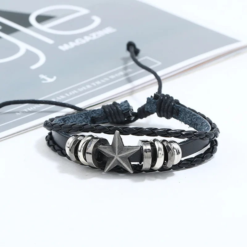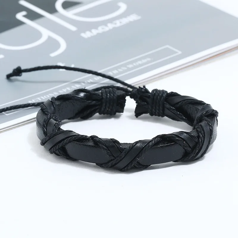 Length: Adjustable Material: cow leather+ CCB+ Wood beads+wax rope+alloy+PU Weight: about 56g