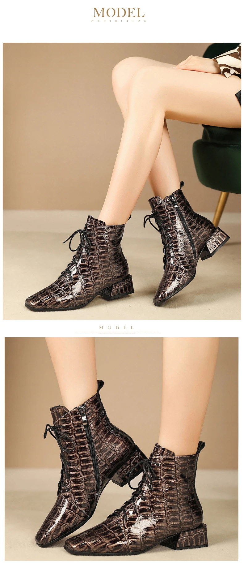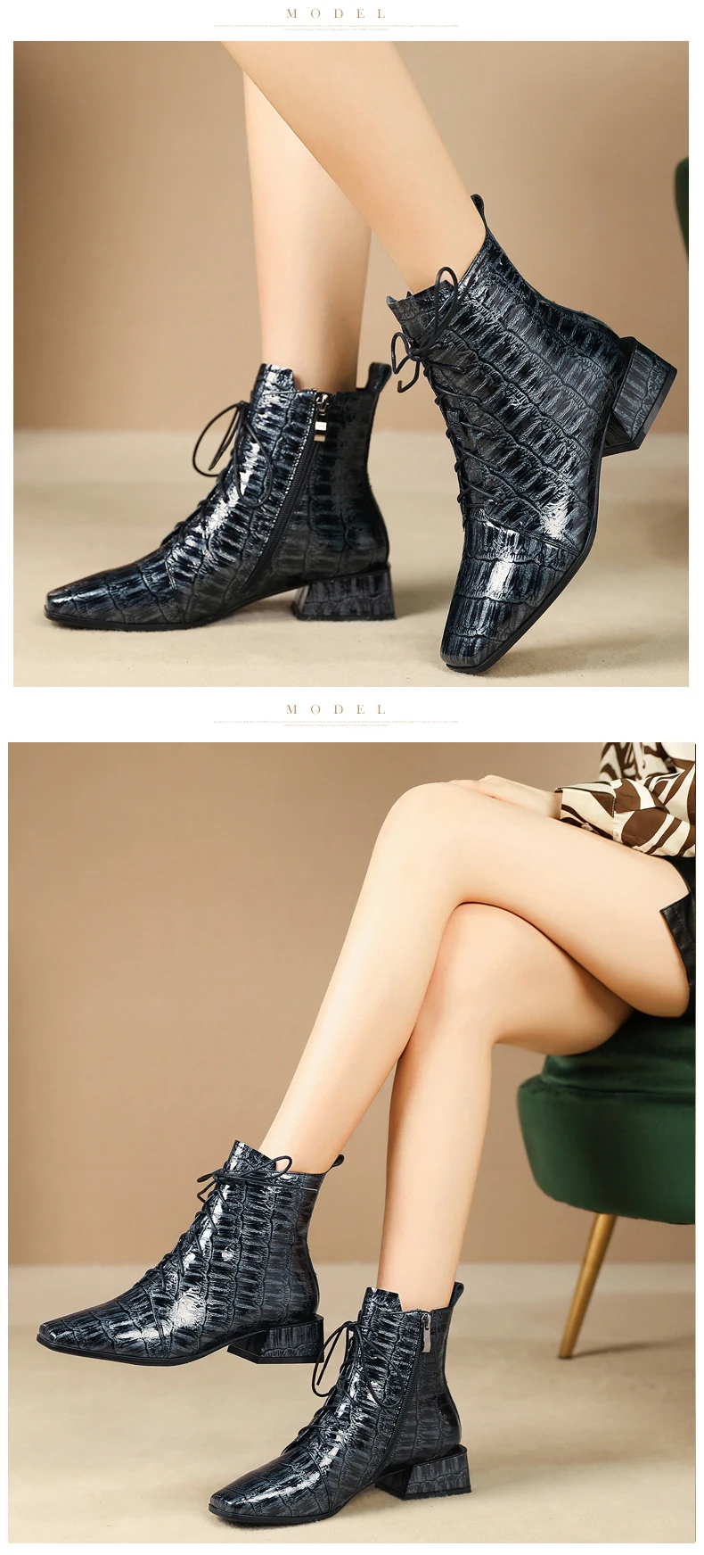 Год выпуска: осень 2019 Типы цветов: серый и черный Размер: 34-42 Материал верха: Воловья кожа Внутренний материал: свиная кожа Высота каблука: 4 см Окружность трубы: 24 см Высота голенища: 14 см Примечание: указанные выше данные измеряются по стандарту 36 размера (1,5).