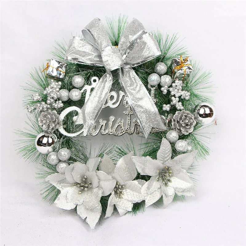 Christmas Wreath Traditional Red Gold Christmas Wreath with Ball Ornament Hanging Decor Xmas Party Door Wall Garland Ornaments