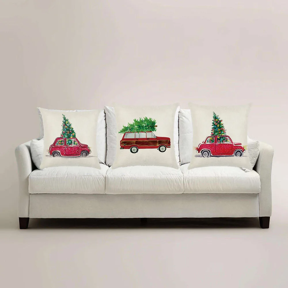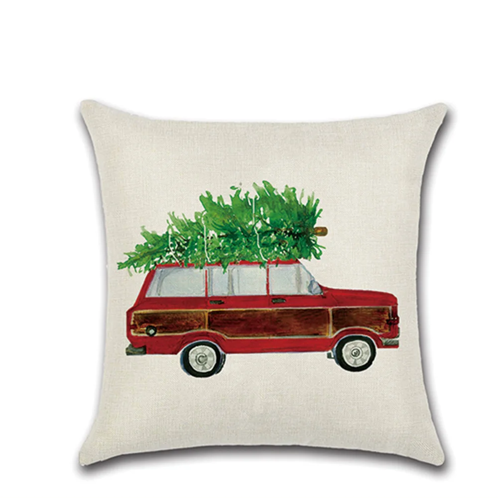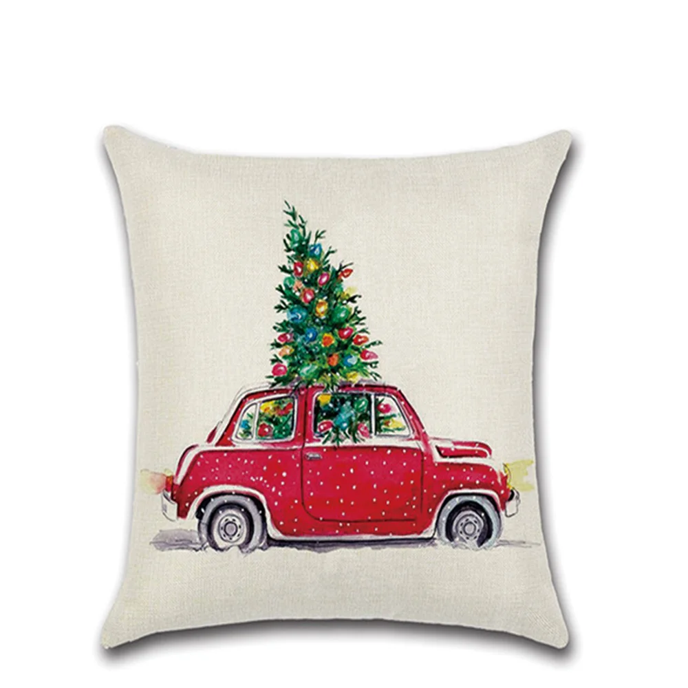 1 шт. Новогодняя Рождественская Подушка Рождественская елка льняная наволочка мультяшный автомобиль рождественские украшения для дома подарки