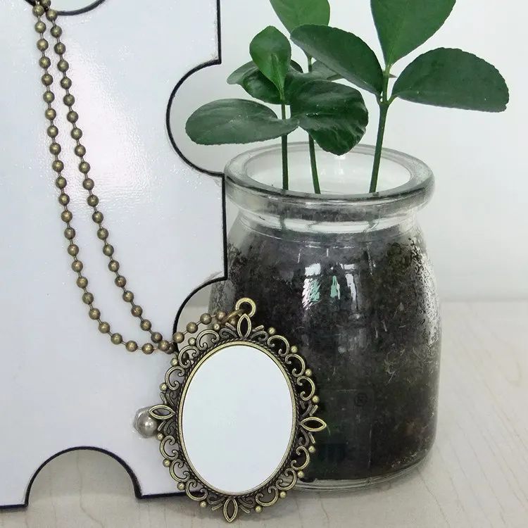 Пользовательские сублимационные пустые Бронзовые Ожерелья Подвески Ювелирные изделия для расходных материалов термопечать DIY подарки 20 шт./лот Размер продукта: 45*30 мм Толщина: 3 мм Материал: цинковый сплав, металлическое покрытие Примечания: Цена указана за сублимационный пустой продукт, мы не печатаем фото