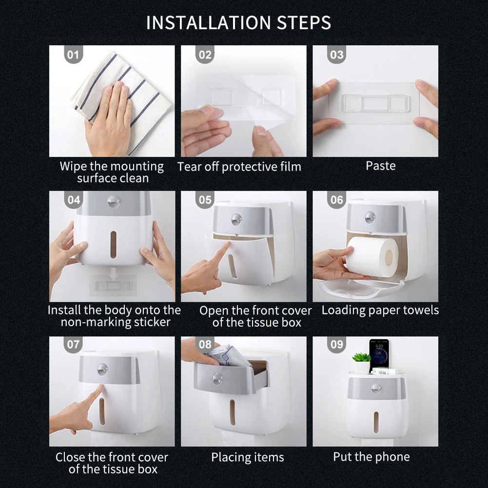 1, Двухслойная структура, многофункциональное, большое пространство внизу может быть помещено в различные типы бумажных полотенец, двухслойные Ящики могут быть помещены с гигиеническими салфетками и другими личными предметами, дизайн верхней ограды, может использоваться в качестве полки при размещении предметов для купания, таких как для мобильного телефона, очков.
