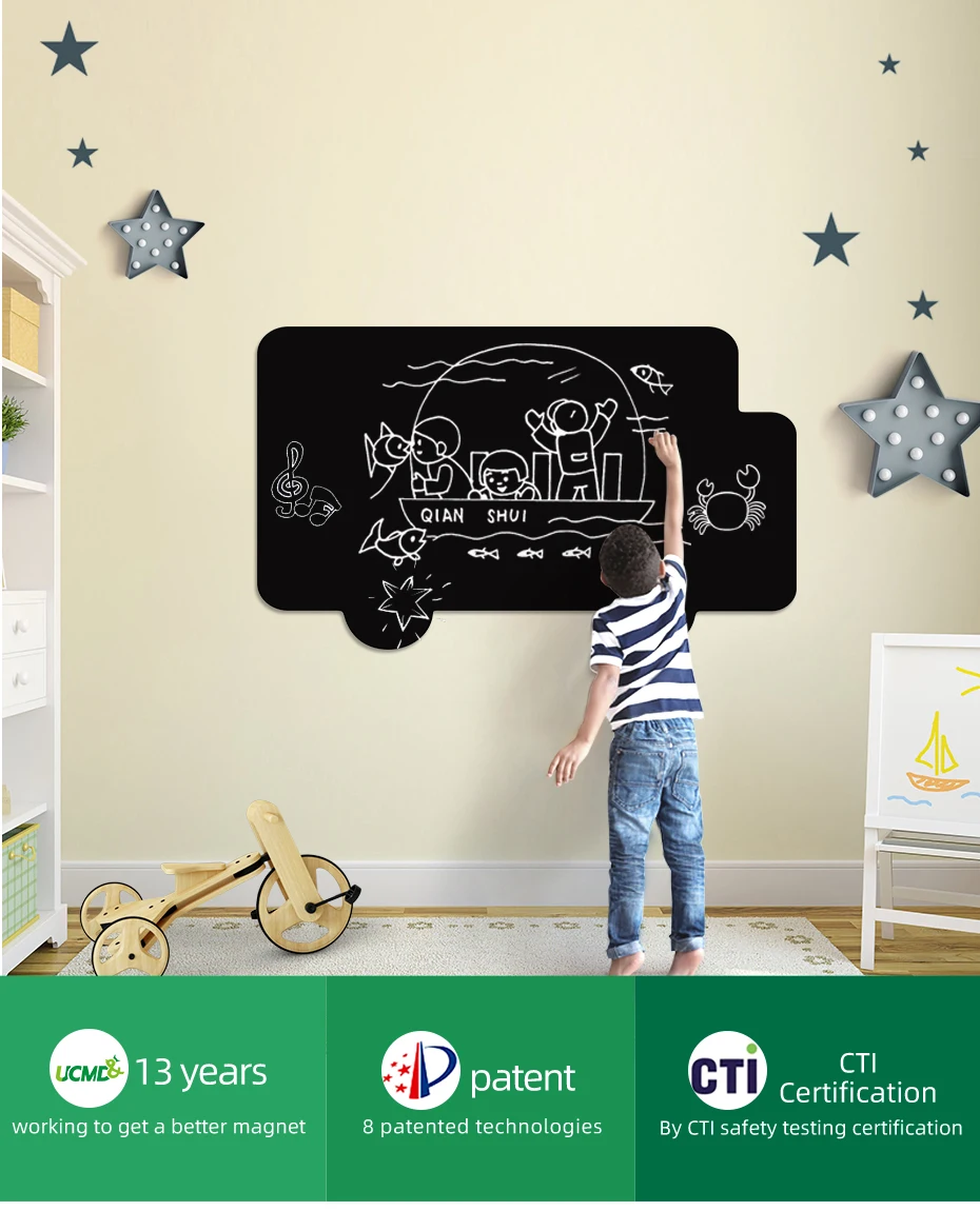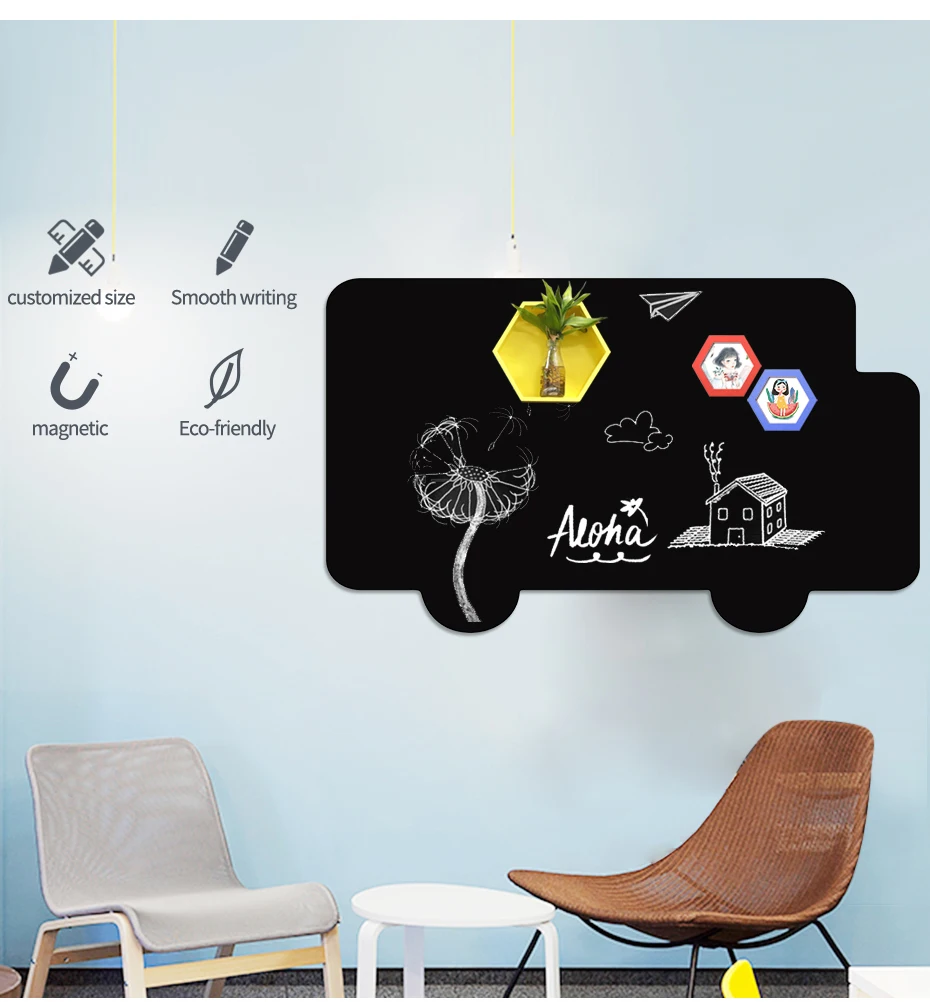 1. Подгонянный: Подгоняйте Размер/форму/цвет 2. Гладкое письмо: Написание свободно мелом 3. Магнитное: удерживайте магниты 4. Экологичное: Экологически чистое и нетоксичное