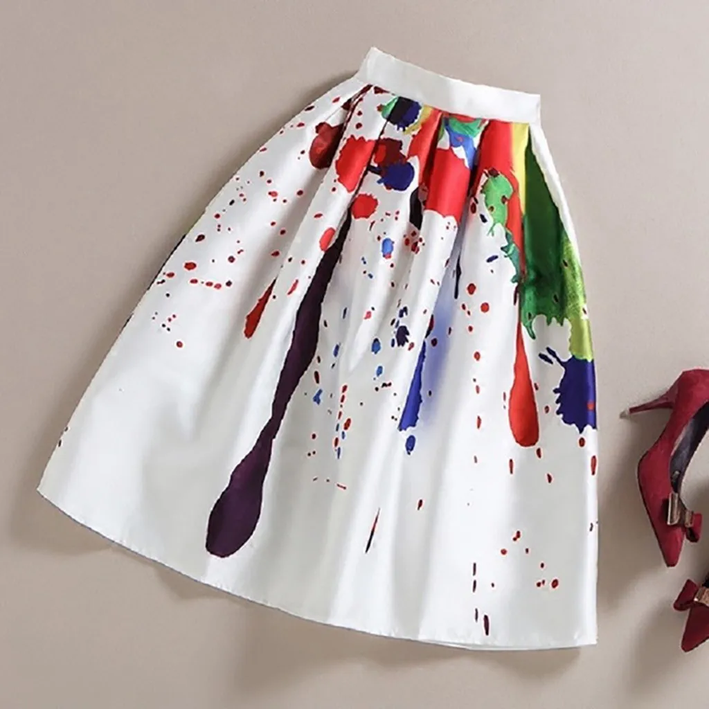 Женская юбка, юбка, юбка shein, Женская винтажная трапециевидная, окрашенная, с высокой талией, с принтом, плиссированная, расклешенная юбка миди