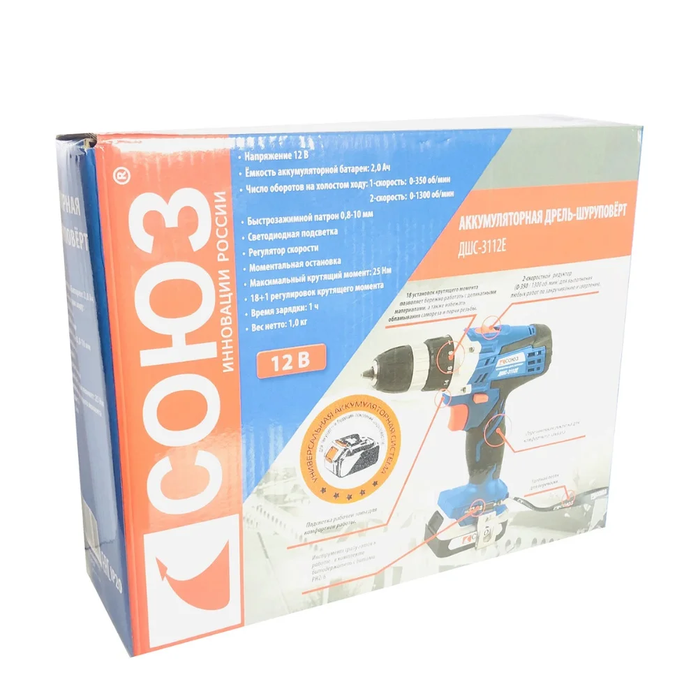 Аккумуляторный шуруповерт СОЮЗ ДШС-3112Е