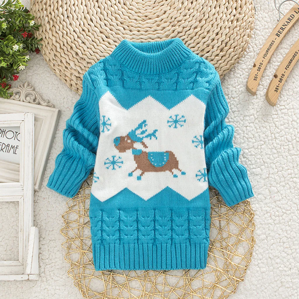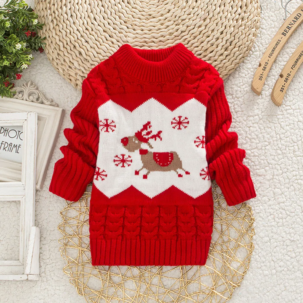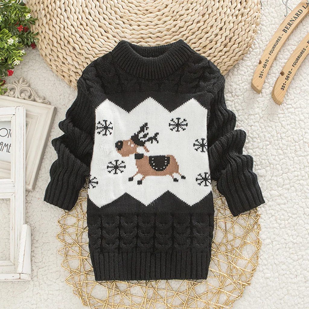 Теплый свитер с рождественским оленем для маленьких девочек; Вязаная вязаная футболка; Одежда
