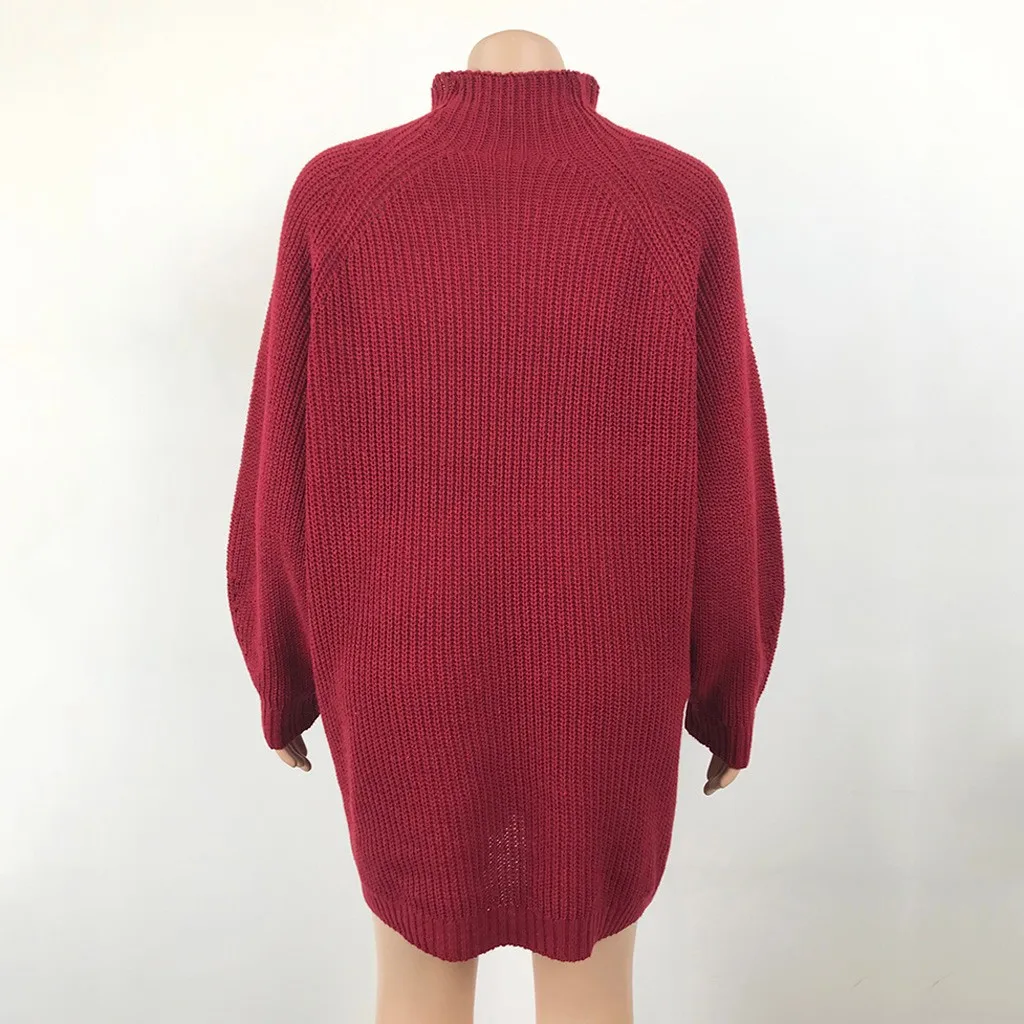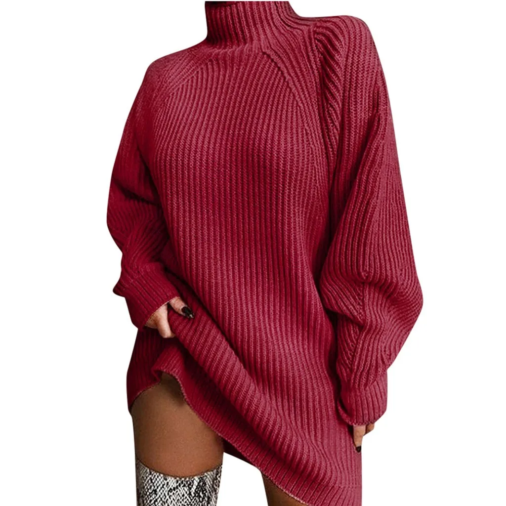Модные Женские однотонные с длинным рукавом водолазка зимний Свободный пуловер свитер платье