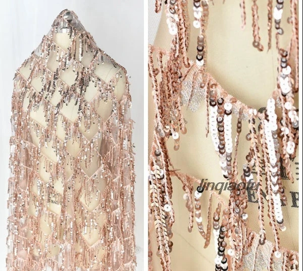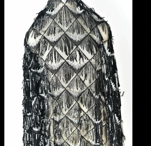 Свадебный костюм с пайетками и бахромой из сетчатой ткани с вышивкой