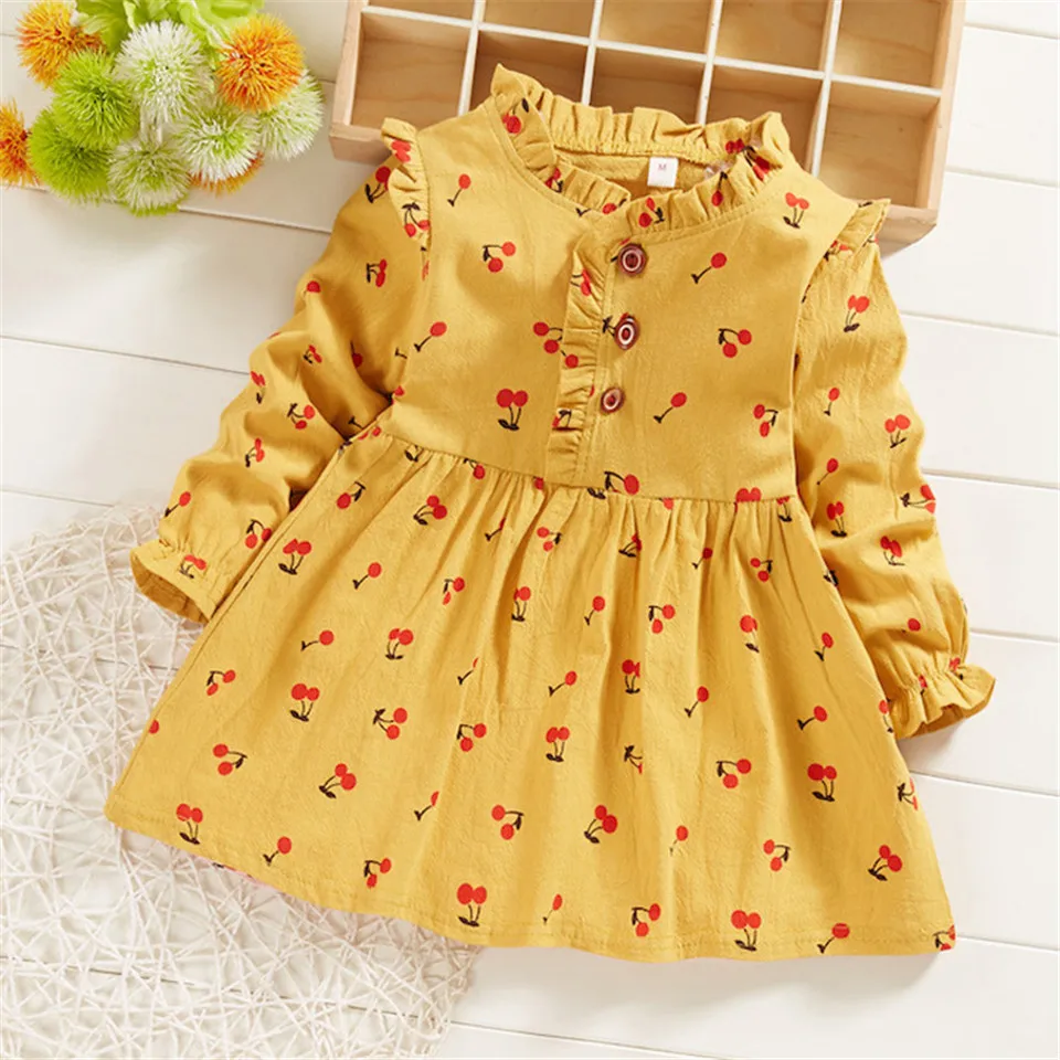 Новинка 2019 года, летнее платье для младенцев, одежда для маленьких девочек с длинными рукавами, однотонная одежда с цветочным рисунком и рюшами для девочек вечерние платья принцессы на Рождество, новинка 2019 года