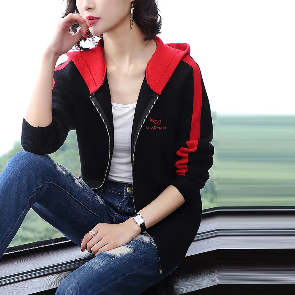 Модный женский кардиган с буквенным принтом, кофта с капюшоном и длинным рукавом, Спортивная кофта