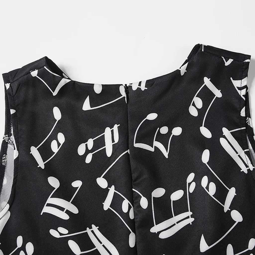 Girls Sleeveless Vintage Note Printed Princess Gown Prom Swing Dress