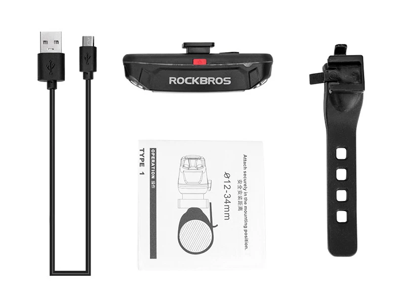 Включает задний светильник, силиконовое крепление, зарядный кабель Micro USB, руководство пользователя