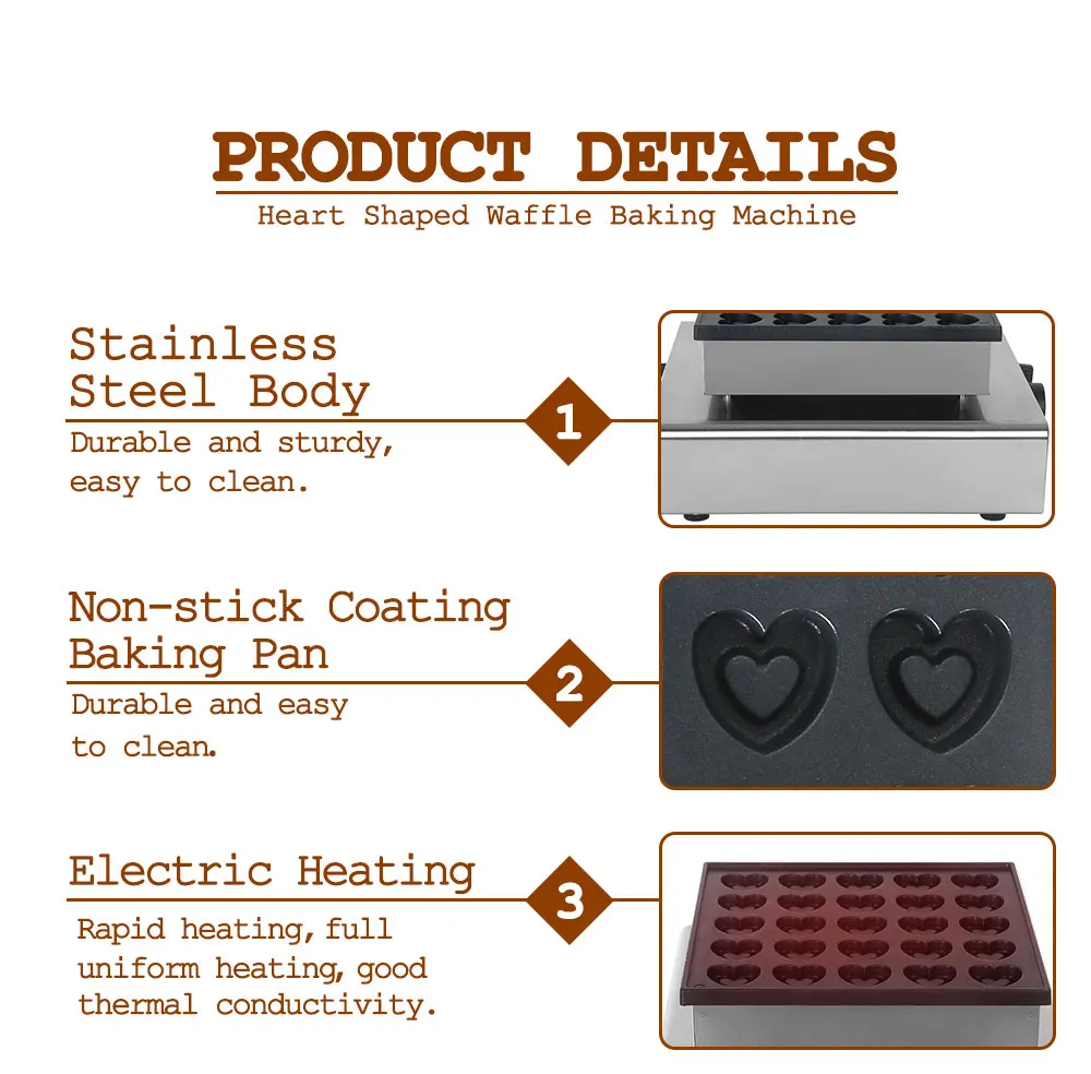 850 Вт электрическая вафли в форме сердца, нержавеющая сталь, вафельница, печь для торта, 25 отверстий, для выпечки, десерт, железная плита, машина 220 В