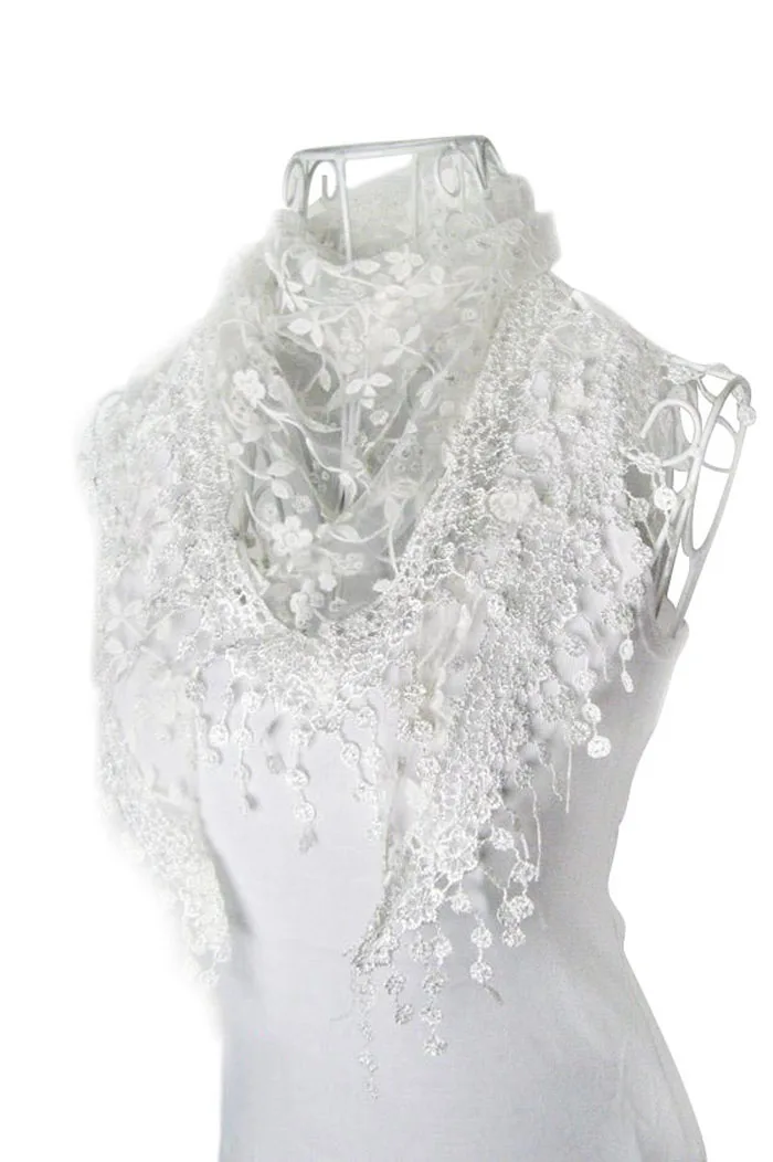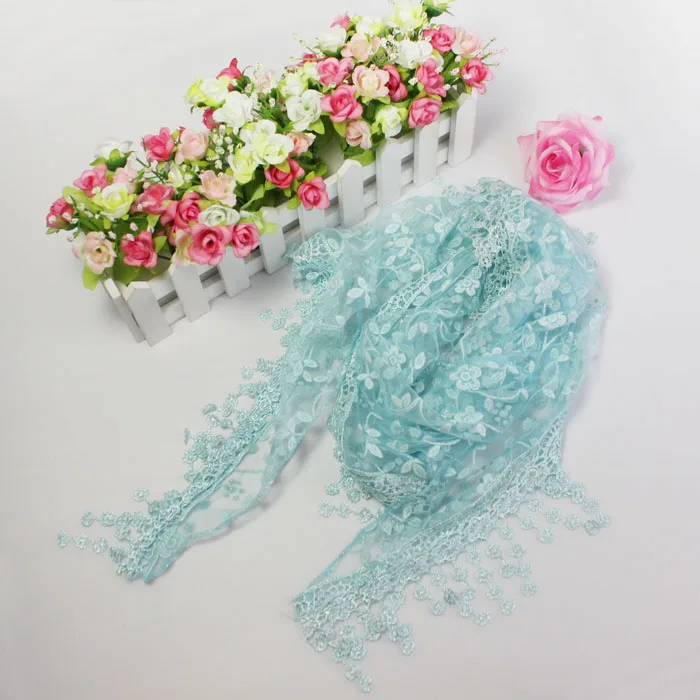 Посылка Содержание:1 комплект из модной Кружева кисточкой Sheer Burntout цветочные печати треугольник Мантилья шарф шаль(Без Розничная упаковка)
