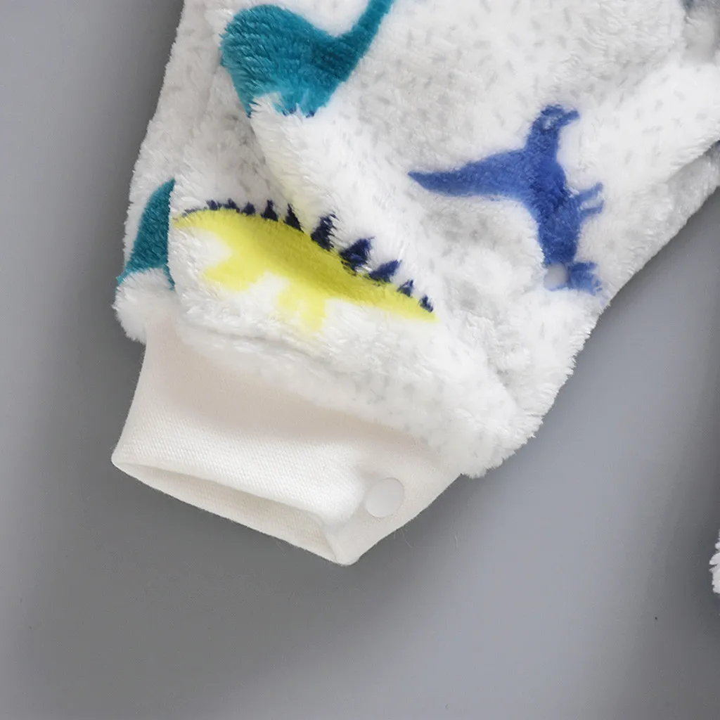 Комплект одежды для новорожденных с рисунком динозавра из мультфильма флисовый теплый комбинезон, спортивный костюм; мягкая Пижама;