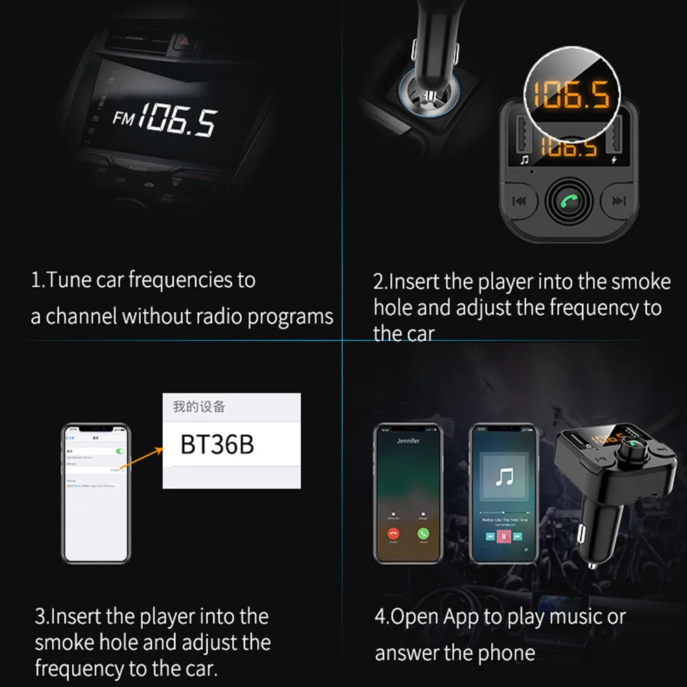 Одна кнопка для активации превосходного звука (басы). Оснащен двойной режим Bluetooth 5,0 чип, интегрированный 32-бит MCU + DSP процессор и 32-бит аудио кодек, Совместимость с Android, для системы Apple. Обработка фонового шумоподавления, делает мобильный телефонный звонок и автомобильный музыкальный эффект более четким.