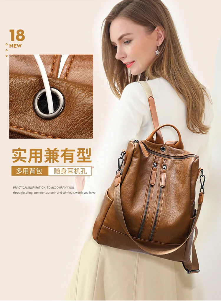 Мягкий и высококачественный натуральный кожаный рюкзак сумка для женщин, девушек, мам, студентов с различными функциями.
