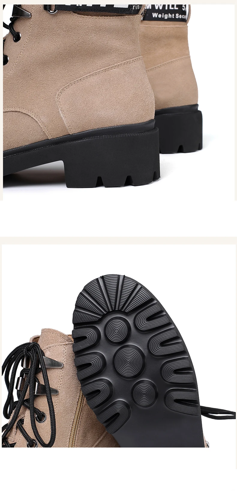 Типы цветов: коричневый и черный Размер: 34-40 Материал верха: Воловья кожа Внутренний материал: волокно/бархат Высота каблука 5,0 см Окружность трубы: 23 см Высота голенища: 13 см Водонепроницаемая платформа 3,0 Примечание: указанные выше данные измеряются по стандарту 36 размера (1,5).