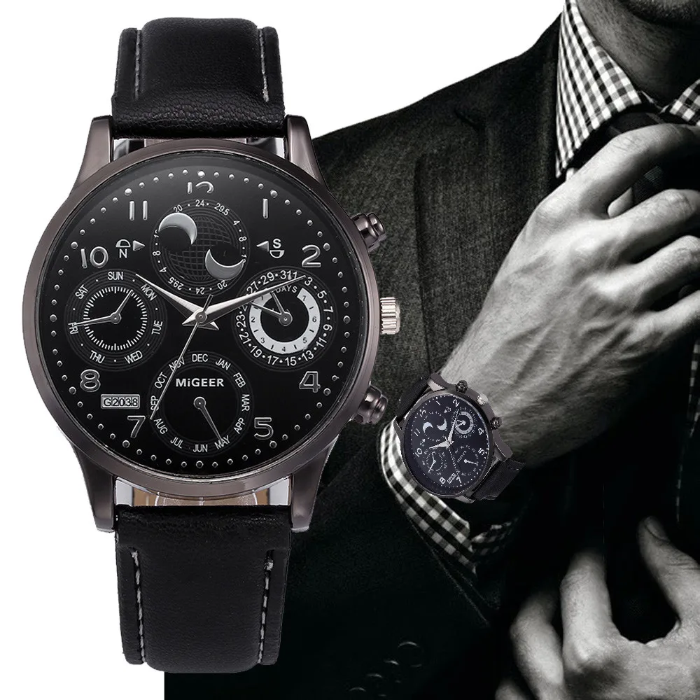 Ретро дизайн кожаный ремешок Аналоговый сплав кварцевые наручные часы