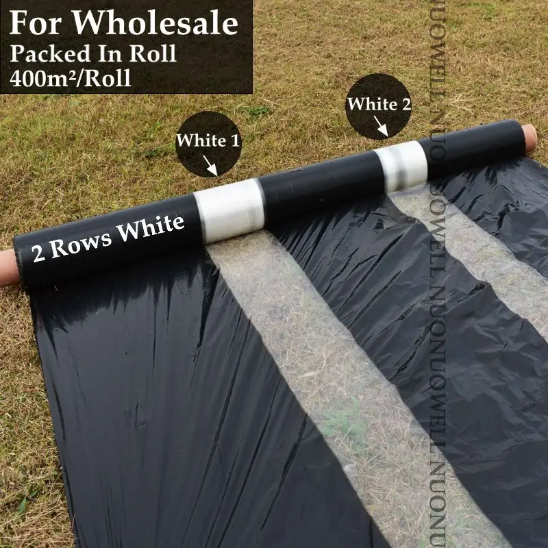Оптовая продажа 400м ²/рулон 2 ряда белая сельскохозяйственная черная пленка для посадки овощей пластик пленка для мульчирование растений борьба с вредителями сорняков сохраняющая тепло пленка для выращивания